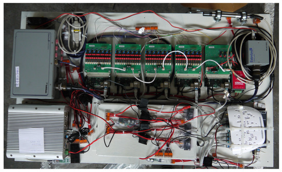 For data acquisition, a fanless computer was used. It was equipped with a WiFi access point to allow control of the system from the ground. The microphone data were recorded at 25 kHz and stored locally on four solid-state disks (SSDs). Acceleration, temperature, and humidity were also recorded at 25 kHz and stored in a separate SSD. The Initium data were recorded at 250 Hz and stored in the internal SSD of the computer via a LabVIEW program. This program was also used to synchronize all measurements. The power supply was realized by a battery with 24 V and 30 Ah. Figure 4 shows the data-acquisition system mounted on an aluminum plate ready to be mounted onto the pressure side of the glove. There is obviously an influence of the box on the pressure side on the flow of the suction that was investigated. Using 2D and 3D CFD (see Section 3), we were able to investigate the different pressure distributions on the suction side. The differences seen there were within the accuracy of the observed values.