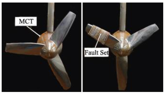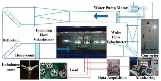 In order to verify the proposed method, a MCT prototype is implemented in an experimental platform, as shown in Figure 9. This experiment platform consists of the following parts: (1) current simulation system (enclosed water channel: adjustable flow velocity 0.2m/s‒1.5m/s); (2) MCT prototype (PMSG: 8 pole-pairs); (3) data acquisition and monitoring system (sampling frequency 1 kHz); (4) imbalance fault setting, as shown in Figure 10.