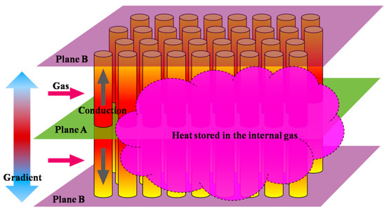 - Due to the temperature gradient of the inlet gas in the axial direction, there are differences in the thermal energy flow passing through the radial planes (i.e., Planes A and B).