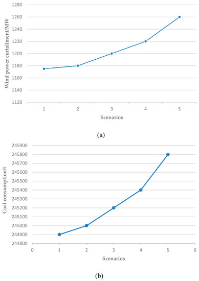 6.4. Scheduling Results and Analysis under Variable Weights of Risks and Coal Consumption Objectives