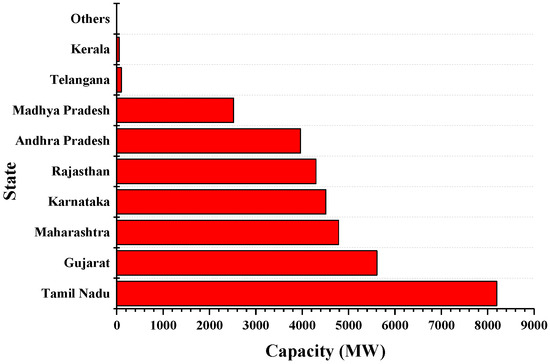 In India, Tamilnadu is the top state in wind power generation and its contribution is around 29% of India’s total, wind generation for various states is shown in Figure 11. The importance of renewable energy and its need was realized in advance and established a new agency in 1985. The capacity of the Muppandal wind farm is 1500 MW and the total installed capacity in Tamilnadu is 7633 MW. Gujarath is focussing on enhancing renewable energy that has led to a sharp rise in wind power capacity. Based on government data the wind generation capacity has increased ten times in just six years. Next is the Mahastra with an installed capacity of 4655.25 MW. All major manufacturers of wind turbine including Vestas, Gamesa and Regen have their presence in Maharastra. In Kerala about 55 MW is installed and the first wind farm was installed in 1997 at Kanjikode in the Palakkad district. Recently offshore wind farms have started plans from 2010 and a 100 MW plant is located off the Gujarath coast that began in 2014. In order to identify potential sites GWEC developed R&D activities.