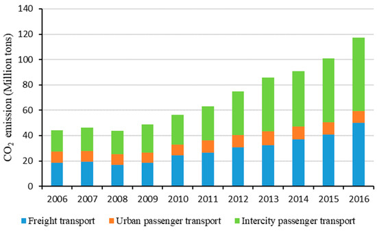- Loo, B.P.Y.; Li, L. Carbon dioxide emissions from passenger transport in China since 1949: Implications for developing sustainable transport. Energy Policy 2012, 50, 464–476. [Google Scholar] [CrossRef]