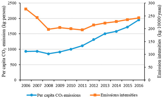 3.1.3. Trends of per Capita CO2 Emissions and Emissions Intensities