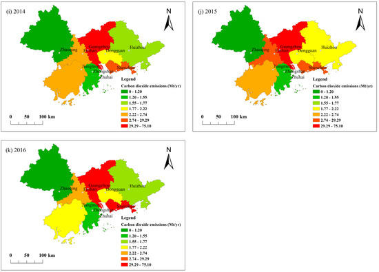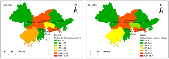 3.2. Spatiotemporal Patterns of CO2 Emissions