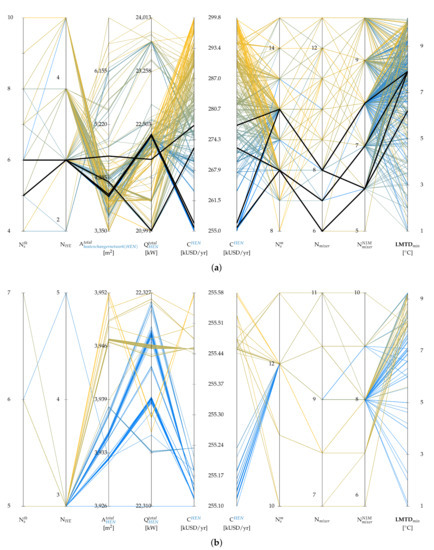 - Cajot, S.; Schüler, N.; Peter, M.; Koch, A.; Maréchal, F. Interactive Optimization With Parallel Coordinates: Exploring Multidimensional Spaces for Decision Support. Front. ICT 2019, 5. [Google Scholar] [CrossRef]