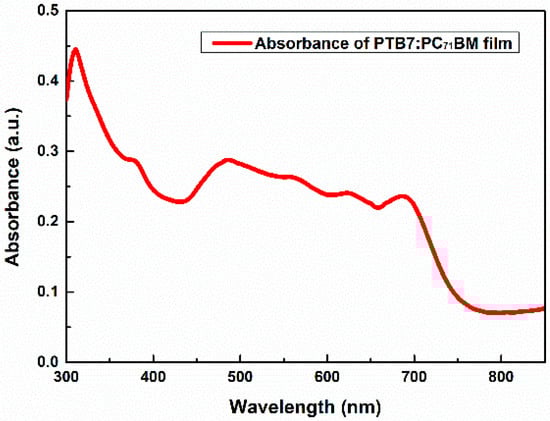 4.5.7. Absorption Measurement of PTB7:PC71BM via UV-Vis Spectroscopy