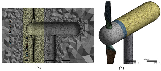 Selective body meshing technique is used with a patch confirming method to set up a tetrahedral mesh starting from the turbine blades in the mesh component system of ANSYS Workbench 18.2. The geometric model is converted into a single part consisting of multiple bodies to obtain a matching conformal mesh on the shared faces between bodies. The mesh used in these simulations is shown in Figure 3.