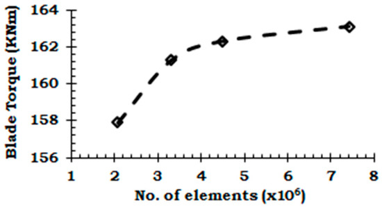 Variation of blade torque with grid density.