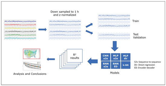The research was performed in phases, firstly with the development of a baseline with persistence and statistical learning methods, secondly choosing the best multi-step forecast regression approach between direct and multiple, and thirdly testing the deep learning architectures with the complete set of data. With all the results, a set of statistical analysis has been applied to obtain graphical results and to infer the conclusions presented in this article. The summary of the architectures and their parameter settings can be seen in Table 4.