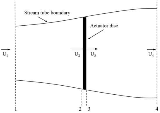 Pressure is assumed to be equal (P1 = P4) far upstream and far downstream, and fluid velocity is equal (U2 = U3) when immediately passing through the actuator disc due to continuity. Equation (4) can be obtained by solving (P2–P3) using Equations (1)–(3).