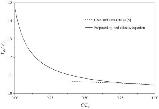 The tip-bed velocity of our proposed equation and previous works.