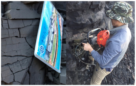 The black carbonaceous shale samples utilized in this paper were obtained from the lower Cambrian Niutitang formation in northwestern Hunan. Most shale gas can be explored in this stratum. Reservoir samples with diameter 50 mm (Φ50) and length 100 mm were obtained by the small modified portable drilling rig in the field (Figure 1). Other samples were cut into 15 × 10 × 5 mm in the lab. However, in order to eliminate the influence of man-made disturbance on rock samples, the intact samples were selected to perform in all experiments. Mineral composition of the shale was obtained by X–ray diffraction (XRD) analysis of rock sample fragments, and the results are indicated in Table 1. The results showed that clay minerals were mainly strong-expanded smectite. There was more than 25% smectite in the samples which indicates that these rocks were prone to changes in strength due to the hydration expansion.