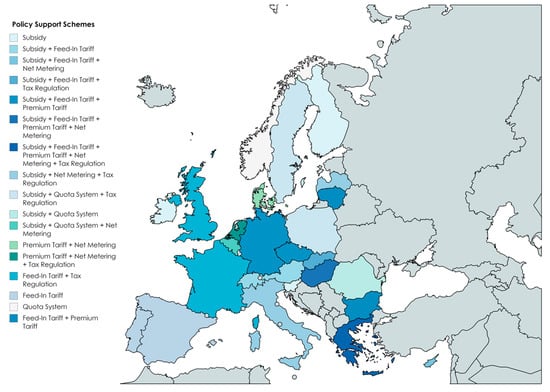 Similar support schemes are applied in other European countries as well, as shown in Figure 1 (based on the Renewable Energy Policy Database—RESLegal [5] for the year of 2017).