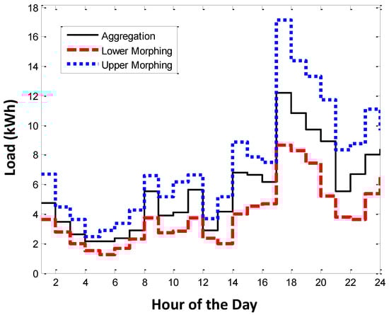 where and are the upper and lower aggregation morphing bounds for the hour i. At this point, we introduce the morphed aggregated load, which is denoted as: