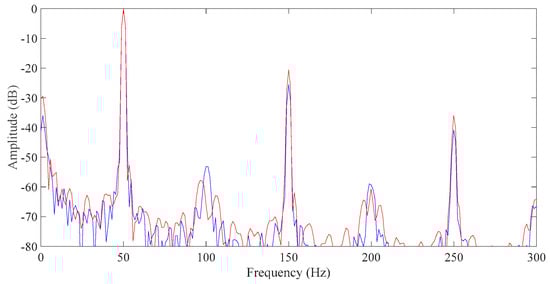Figure 5 below. It is clear that the third harmonic’s amplitude increased in the faulty machine and the amplitude difference was approximately 5 dB. A similar amplitude increase was observed in the fifth harmonic as well.