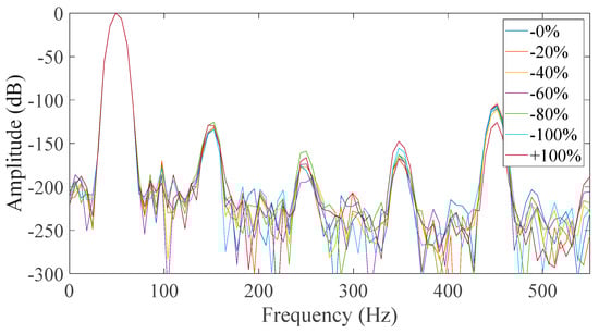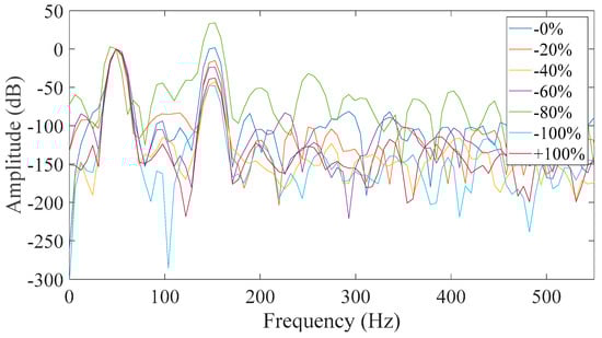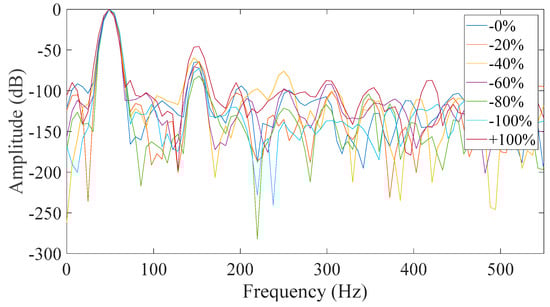 Figure 15). The similarities between the two cases are that in both, the neutral was disconnected and the field winding was short-circuited. That is because all faulty cases appeared to have a significant increase of the third harmonic amplitude with respect to the healthy machine. However, it was observed that most of the captured data had a monotonic relation with the fault level severity in Case 7 which did not happen in Case 3. The monotony of the mechanism was not shown only for 80% severity, which is very close to 60% severity. That result could have been caused by many factors associated with inherent asymmetries during the testing and the fact that the test subject is a small machine with very short air-gap. So, the time when the rotor pole is across the measured phase was the best starting point in order to get reliable results.