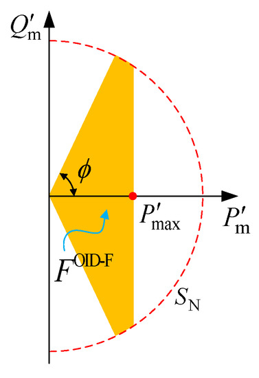 Therefore, the reactive power provided by the PV generation to the grid was limited by its rated capacity and its active power, and the reactive power output could be written as Equation (3):