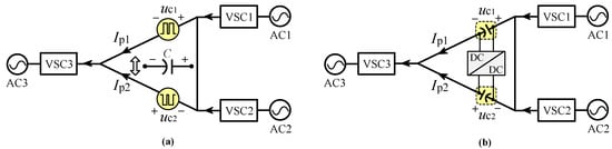 24]. In comparison, the DCPFC of capacitor-based interline energy-exchanged type has more advantages and better application prospects. For instance, it has fewer power devices; does not require an external power supply device; and can avoid withstanding the system-level high voltage and power, which help reduce the stress requirements of the power devices and system losses. Therefore, it has become a kind of DCPFC which is currently more researched and heavily focused on [