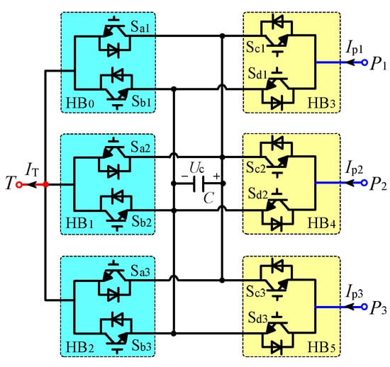 26], a MI-DCPFC topology based on identical insulated gate bipolar transistor (IGBT) half-bridge was proposed. Its system structure is simple, and the cost of the port expansion is low. However, as only a basic control method is introduced, it can not achieve independent tracking of the current regulation commands for each transmission line, where the power flow regulating has limited freedom.