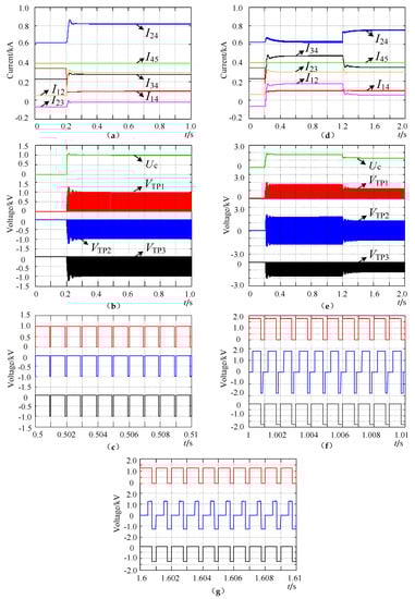 The working-mode 6 (I24 and I34 are reduced; I14 is increased) was verified in this case. Similarly, to make it easy to compare and analyze the simplified MI-DCPFC with the traditional and novel control methods were tested, respectively.