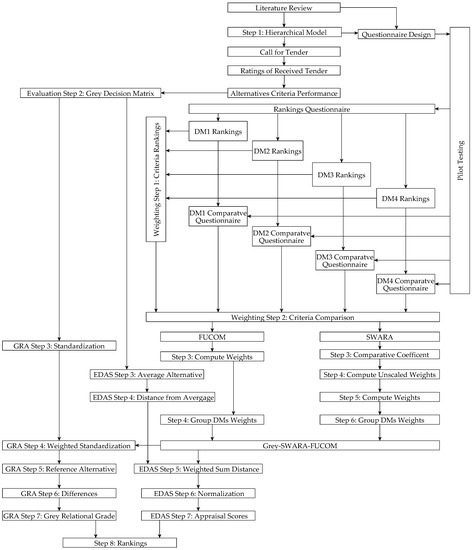 Moreover, in solving an MCDM problem, comparing the alternatives to a given benchmark is a way of evaluating and ranking the alternatives. The traditional grey relational analysis (GRA) and evaluation based on distance from the average (EDAS) compare alternatives to an optimal solution and average solution, respectively. In this paper, the grey SWARA-FUCOM method is combined with the traditional GRA and EDAS to evaluate the contractors for the floating solar panel power system, which is a form of sustainable energy. This paper does not provide an evaluation of the project but selects the contractor to execute the project.