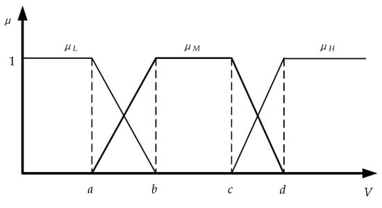 Although the above gives a finite number of feasible schemes, when the uncertain variables are continuous variables, the target utility value of these schemes is in a continuously changing interval and changes with the uncertain variables; the decision workload is large and complex, which is very unfavorable for making decisions using DBN theory. When making decisions in an uncertain environment, with the decision-making scheme used, it is often difficult to achieve a certain target utility value, and it only needs to reach a certain target state. In order to facilitate the selection of feasible solutions, the target utility value is discretized into several discrete states by the fuzzy set method according to the actual needs. The membership function of the fuzzy set adopts the most common trapezoidal membership function. If the target utility value is discretized into three states, high, medium, and low, the membership functions of the three states are: