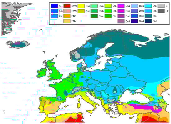European map of the Köppen–Geiger climate classification [].