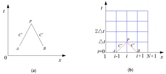 Characteristic line schematic diagram and grid: (a) Characteristic lines on x-t plane; (b) X-t feature line grid.