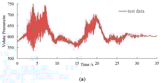 Matlab programming is used to realize the process. The pressure process line in Figure 8 was smoothed by five-spot triple smoothing method, and the results are shown in Figure 9. The time average of the spiral case and draft tube inlet after smoothing were compared with the numerical simulation results. The specific comparison results are presented in Section 4.