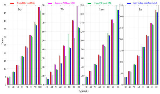 - The improved PID-based CAB has a little shorter D on dry road compared with a normal PID-based CAB. However, the D of the improved PID-based CAB is slightly longer than the normal PID-based CAB on snow roads and ice roads with all the initial vehicle velocities.