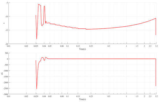 Figure 15 shows the adaptive changes of sliding mode surfaces during the whole ABS control period. In addition, Figure 16 shows the parameter change details of the sliding model control module.