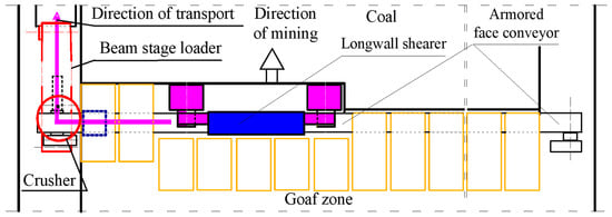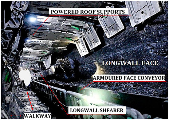 View at the longwall face. Reproduced from [16]. Inżynieria Górnicza, 2019.