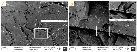 Microscopic position of coal: (a) smooth position; (b) fracture position.