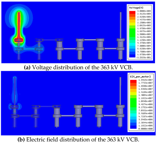 The static voltage and electric field distribution of the 363 kV VCB.