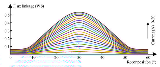 The simulation model of the SRM drive system is established in MATLAB/Simulink. The Flux linkage of the SRM is shown in Figure 13.