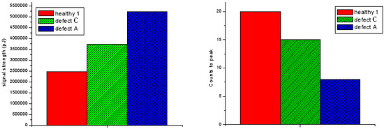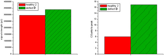 Figure 8 shows signal strength and count-to-peak differences of defect D and healthy area.