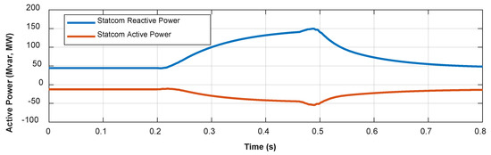 Active and reactive power of the STATCOM during the short circuit (PHIL test).