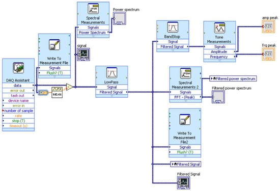 In Figure 10 it is reported the Labview schematic that implements signals acquisition and analysis modules.