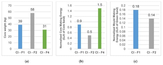 Mold- and core-making: (a) core weight, (b) core-making energy, and (c) mold-making energy.