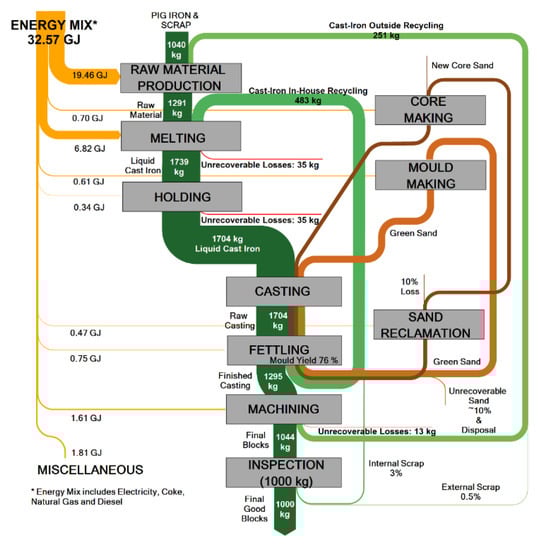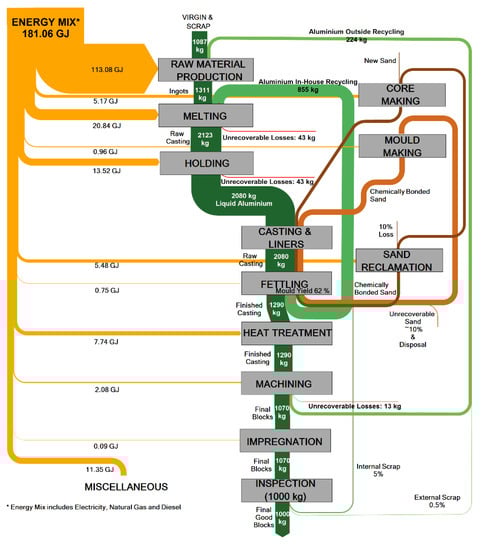 - Pagone, E.; Salonitis, K.; Jolly, M. Energy and material efficiency metrics in foundries. Procedia Manuf. 2018, 21, 421–428. [Google Scholar] [CrossRef]