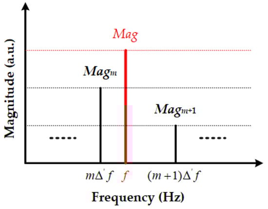 In order to improve the frequency resolution, an interpolation factor F is introduced. Therefore, the frequency resolution is refined to and the total spectrum grid is changed from N to . The final spectrum expression in the new frequency resolution can be written as