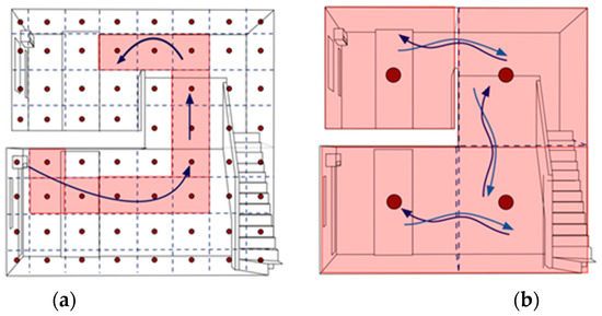 Heat diffusion using CFD and ES. (a) Experimental house 1st floor (1F); (b) Experimental house 2nd floor (2F).
