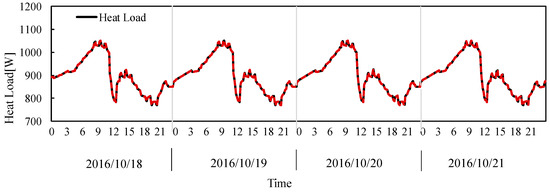 The variation in the thermal load over time is shown in Figure 7. This thermal load was multiplied by the coefficient of thermal diffusion and distributed to each zone.
