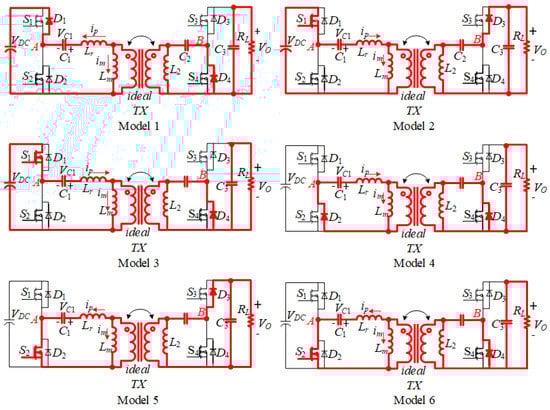 Model 4 to Model 6 are working in the opposite state. In summary, it can be seen that the working mode of operation in Model 1 to Model 3 is symmetrical with respect to Model 4 to Model 6.