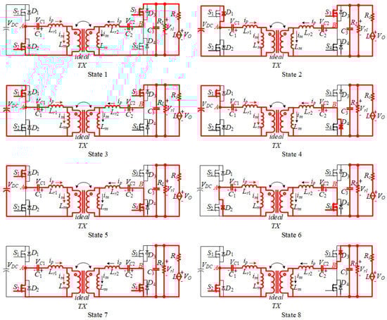 The working mode of State 5 to State 8 is in the opposite direction of State 1 to State 4. From the above analysis, the working mode of the reverse transfer mode is also symmetrical.