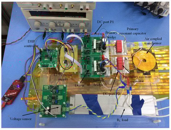 An experimental platform was built as shown in Figure 20, concluding the DC voltage source, air-coupled transformer and the simulated load of DC grid, and the parameters of the hardware system as listed in Table 1.