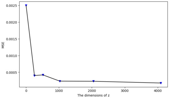 The object of training the CAE network is to use as few dimensions as possible to reconstruct the input, and the reconstructed images should be as similar as the original images. Figure 7 shows the mean square error (MSE) among different dimensions, and Table 3 shows the corresponding values. The MSE changes slightly when the dimensions are greater than 1000. We choose 1024 as the appropriate dimensions for the latent representation .