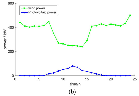 (a) Power price and gas price; (b) Wind and photovoltaic forecasted power.