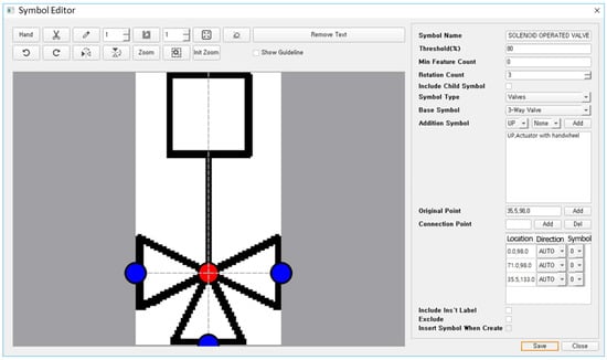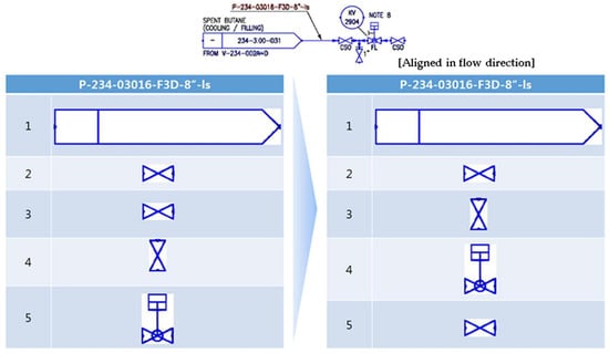 However, the conventional digitization process of design drawings has been used thus far only to check errors by visually comparing the digitized design drawings with the imaged drawings. Although P&ID is the most important information to obtain, there is a significant problem in using the data needed to automate the design []. In other words, the imaged P&ID drawings must be manually compared with the new digitized drawings, which results in difficulty in obtaining mutual consistency assurance, such as checking whether the components listed on the imaged P&ID drawing match with those in the new digitized drawings. In addition, because all the materials, including valves and other similar components, must be recorded in the digitized drawings, creating new electronic drawings by manual input is a time-consuming process. It is very difficult to modify the calculated materials and to manage their updates when the layout of the piping and other components is changed thereafter.