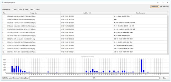 After extracting the area where the text exists, the text is recognized by OCR in the image of the extracted area. However, because the recognition rate is not 100%, even with the highest level of OCR, it is necessary to increase the recognition rate by training the texts. If the text is not recognized, the text image is saved, and the characters are mapped in each image. To map characters, one can either map the characters that are closest to the characters in the image or use a method that manually specifies the characters that correspond to each character. Then, the training data are generated by using the mapping data, and the generated training data are converted into a database and applied to the text recognition.